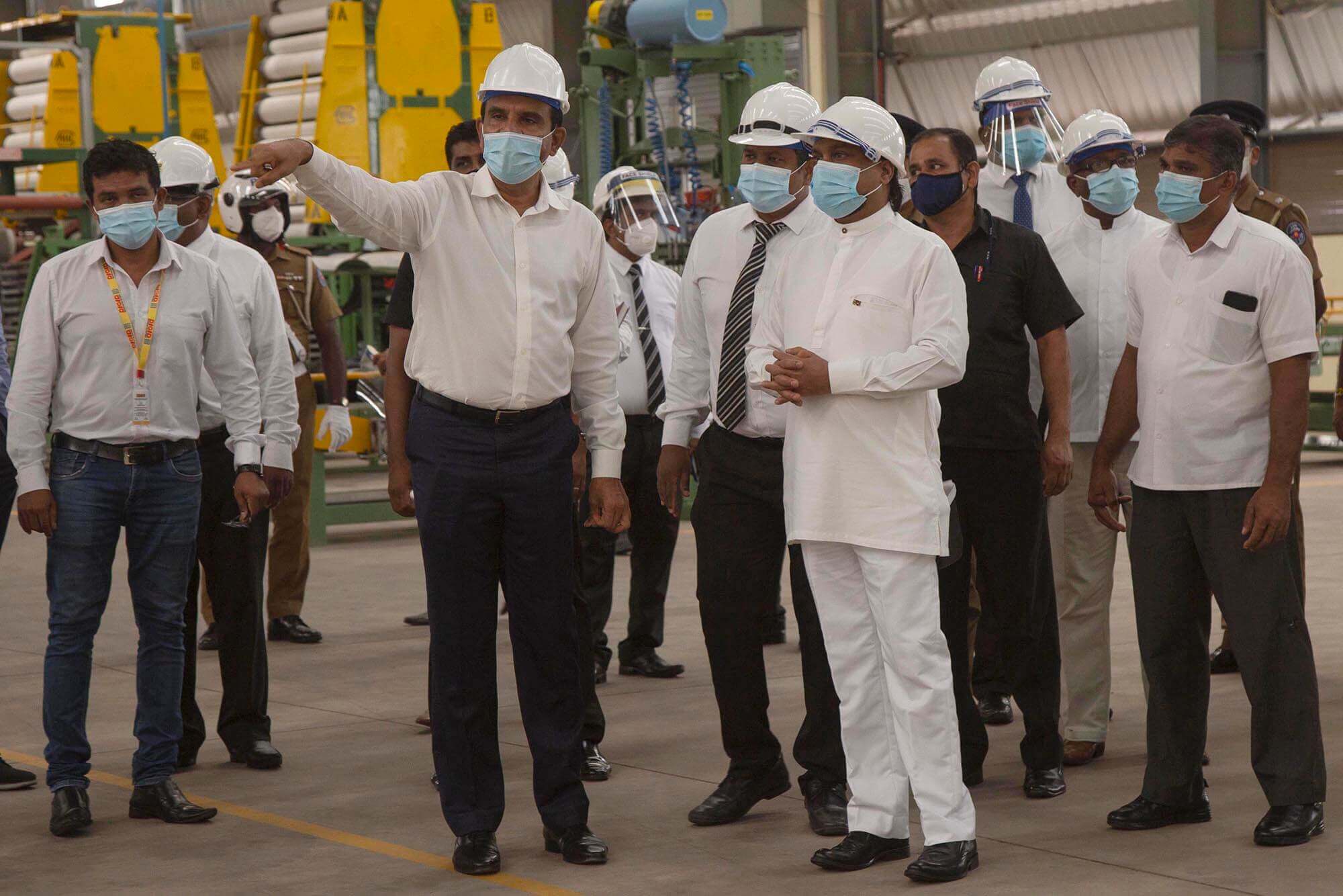 Membro do partamento, D.V. Chanaka visita a fábrica da Ferentino na zona industrial de Horana Wagawatta para uma inspeção antes da inauguração em 14 de Janeiro de 2021.